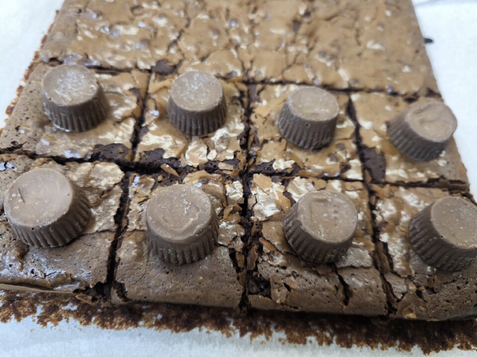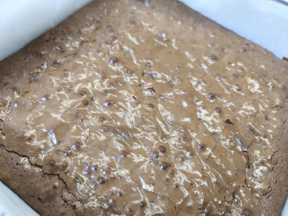 Retirar com cuidado para não perder o topo brilhante. Se fizer apenas a receita dos brownies, e não for para decorar, deixe arrefecer por completo.