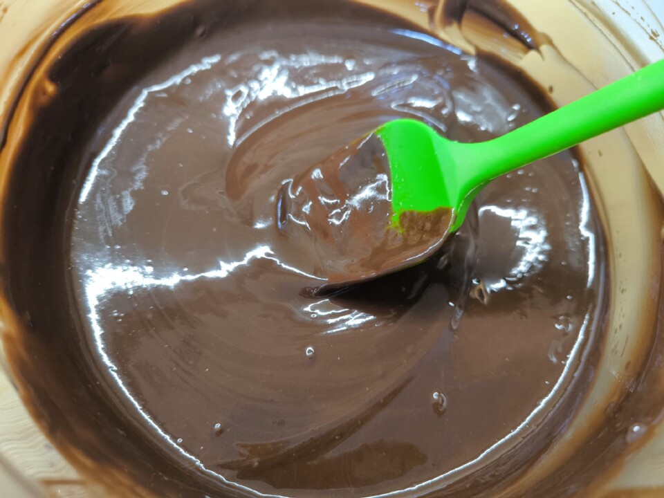 Derreter o chocolate negro, e com ele, desenhar as pernas da aranha.